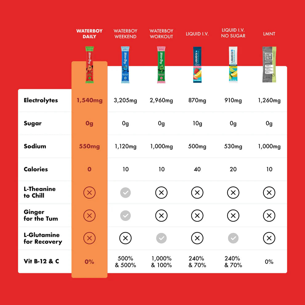 Unlike Liquid IV and other popular brands, Water Boy actually contains high levels of several electrolytes, not just sodium like the leading brand. We get enough salt as a society already. We need the OTHER electrolytes like potassium, magnesium and Water Boy contain Potassium Citrate, Magnesium Citrate, and the Sodium Chloride comes from Himalayan Pink Salt, which contains lesser known trace minerals that also function as electrolytes. In fact, I reviewed all of their formulas and I'm quite impressed - everything is in the correct form. For example, theB12 as methylcobalamin instead of cyanocobalamin that is literally bound to the poison cyanide).